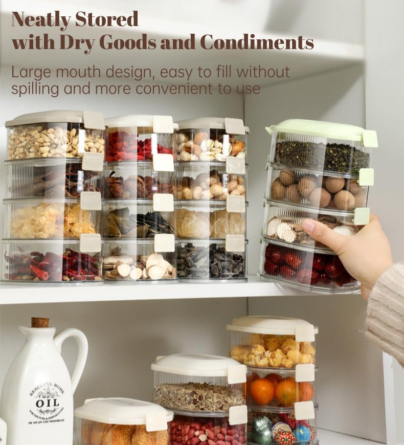 - Multi-layered Seasoning Storage Box: Food storage containers for pantry are designed to keep your condiment collection organised and easily accessible. Clear design, you can quickly identify and find the spices you want, saving you valuable time in the kitchen.